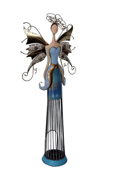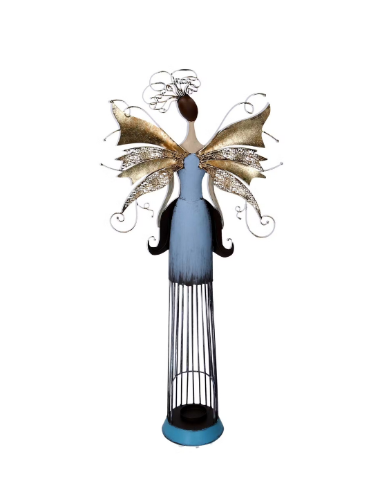 Elegante fatina decorativa VACCHETTI in metallo blu e oro. Perfetta per decorazioni natalizie e living. Complemento d'arredo di qualità.