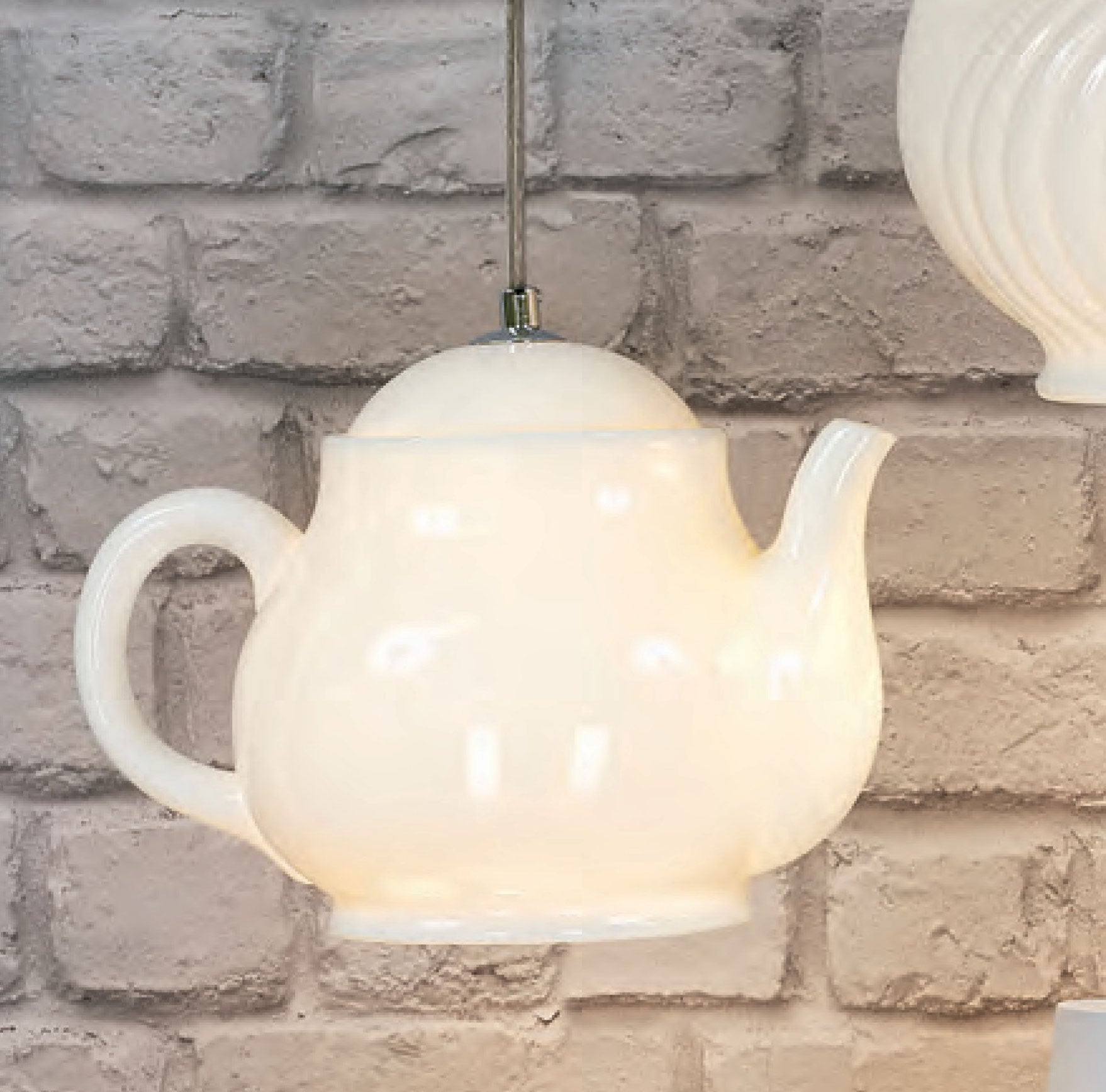 Elegante lampada da soffitto Teapot in porcellana bianca. Ideale per angolo Bar. Design moderno per complementi d'arredo.