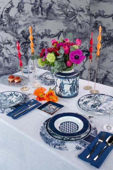 Vassoio Rettangolare in Melamina dell'elegante collezione Versailles. Il classico disegno toile de jouy della collezione Versailles evoca un mondo di gioia, romanticismo e avventura.