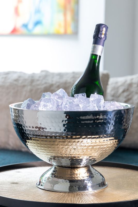 Questo secchiello porta ghiaccio è la scelta ideale per interni in stile glam. Molto versatile, perfetto per tenere in fresco una o più bottiglie e allo stesso tempo, è un prezioso complemento d'arredo.