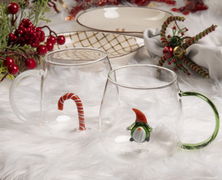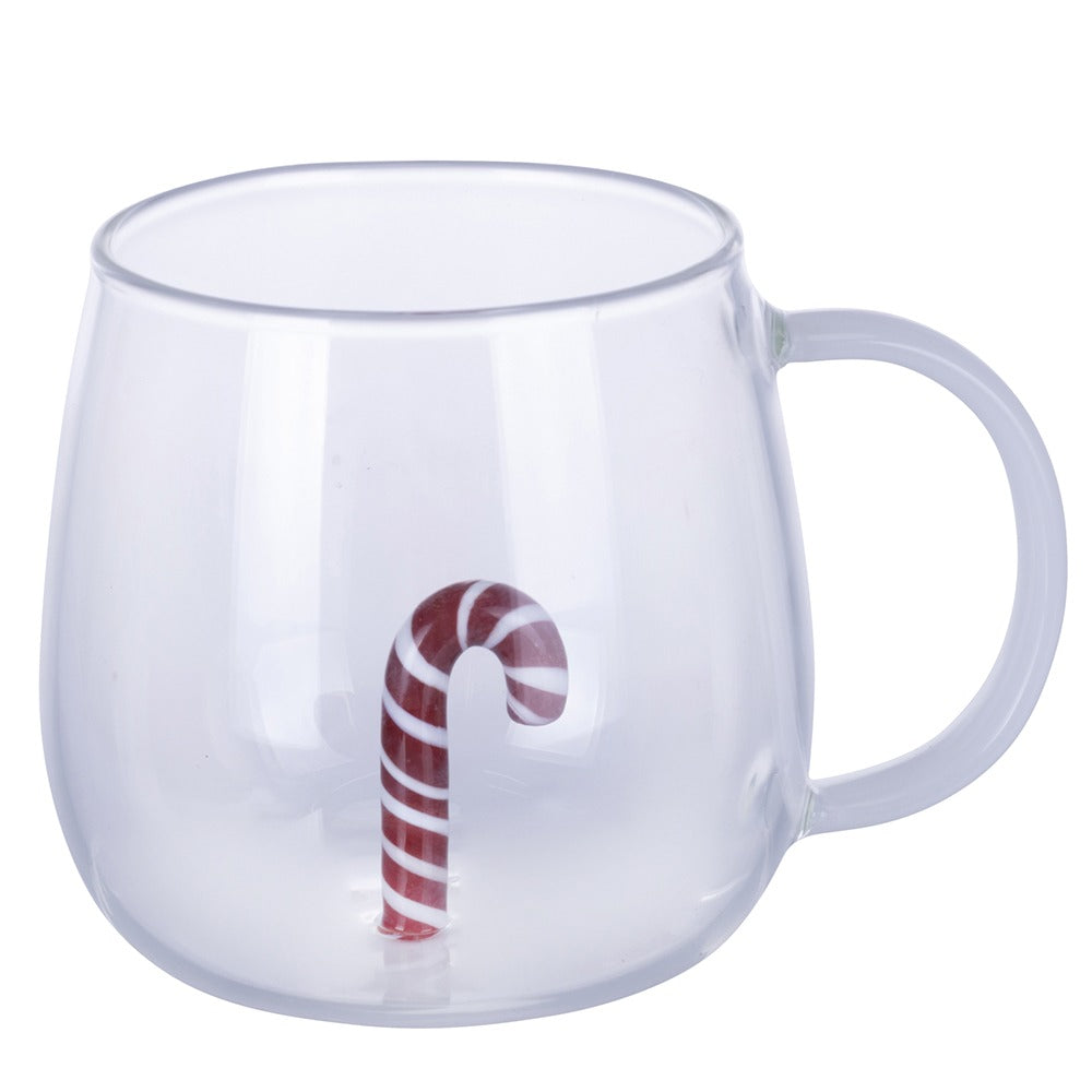 Tazza in vetro borosilicato con decoro natalizio in vetro colorato all’interno.