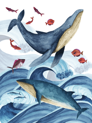 Canovaccio decorativo con motivo balena in 100% lino 55x75cm. Design marino elegante per cucina e casa. Qualità THE NAPKING.