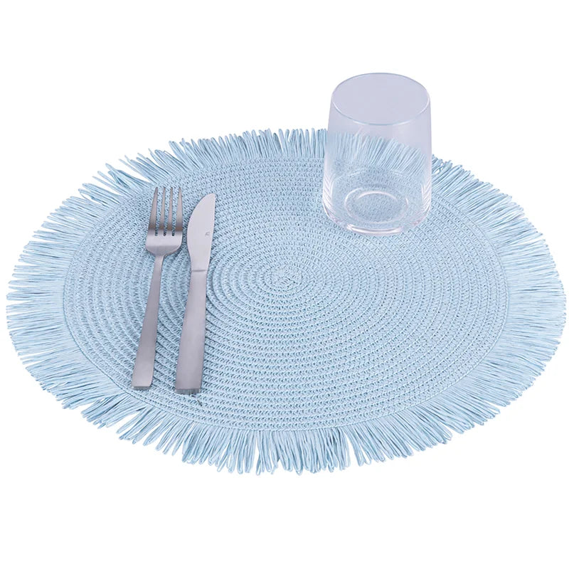 Descrizione: Set n.4 Tovagliette tonda con frange Shades of Ocean
