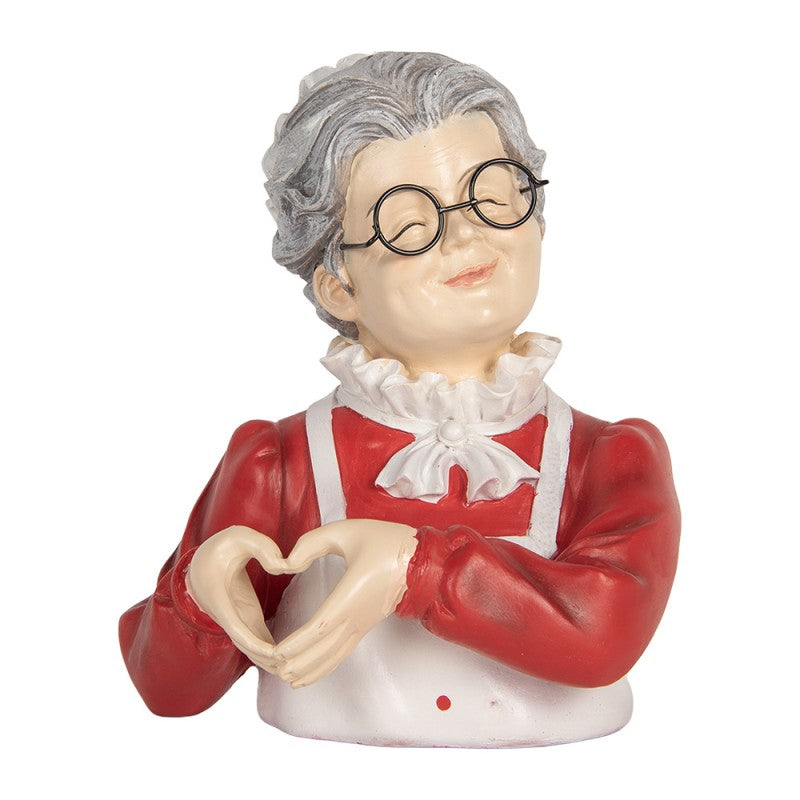 Decorazione natalizia Nonna Natale con Cuore di Clayre&Eef. Statuetta festiva 19x18x23cm perfetta per creare un'atmosfera calda e accogliente durante le feste.